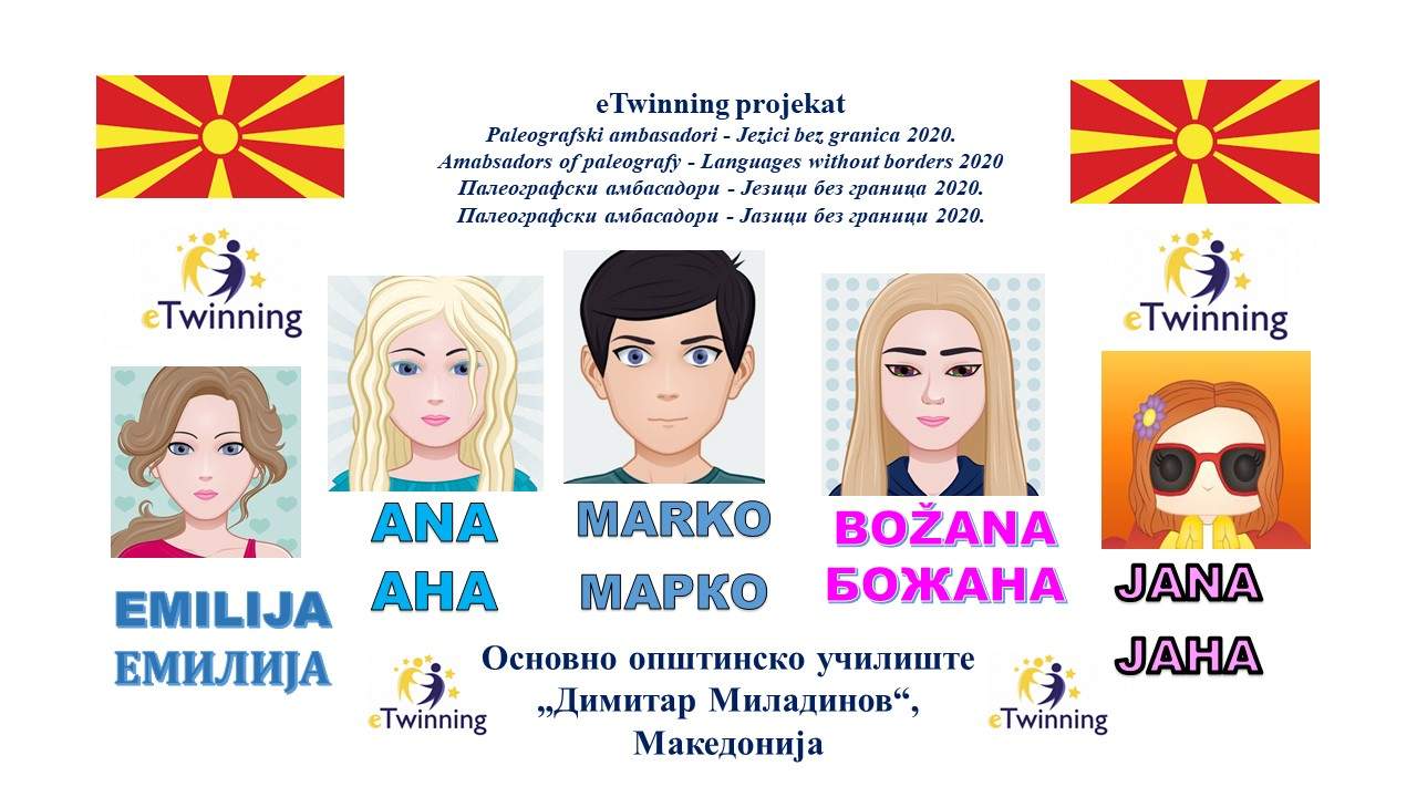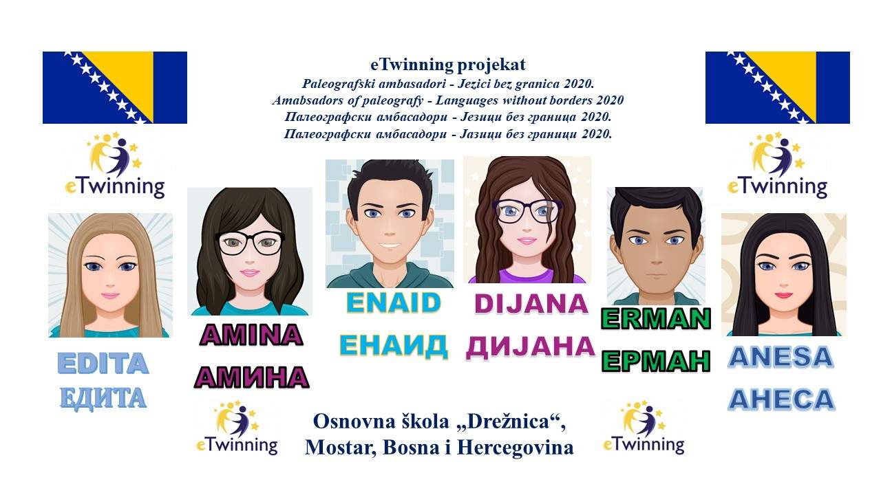 Paleografski ambasadori OŠ "Drežnica", Mostar, Bosna i Hercegovina, OŠ "Pavao Belas", Republika Hrvatska, OOU „Dimitar Miladinov“, Makedonija i Ekonomske škole iz Niša, Republika Srbija su uspješno sarađivali u projektu i pokazali su na originalan i inovativan način da su djeca najbolji ambasadori maternjeg jezika.