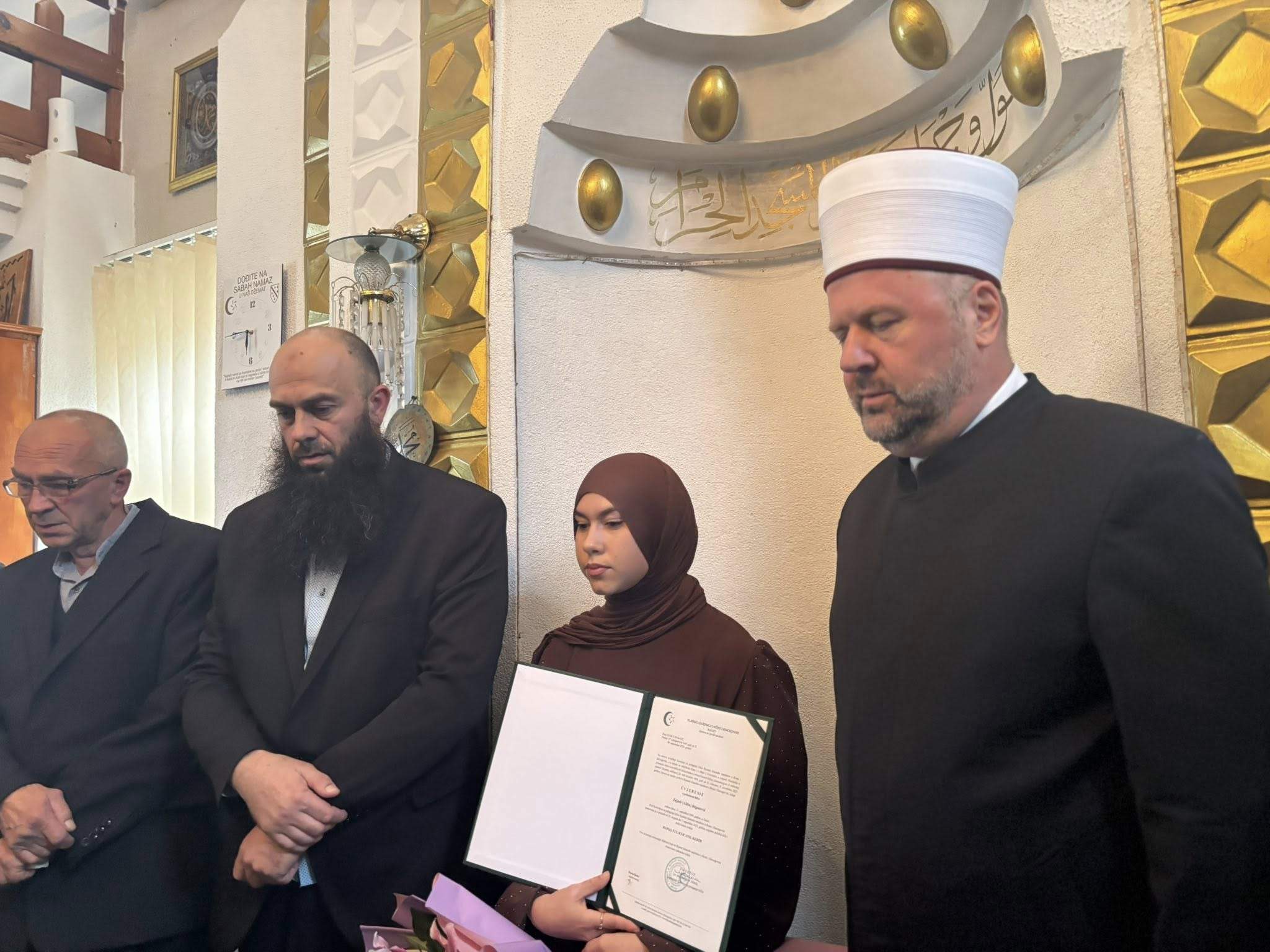 Muftija Dizdarević je istakao da je Islamska zajednice ponosna što u posljednje vrijeme ima sve veći broj mladih hafiza, a hafizi Zejneb je uručio uvjerenje o položenom hifzu.