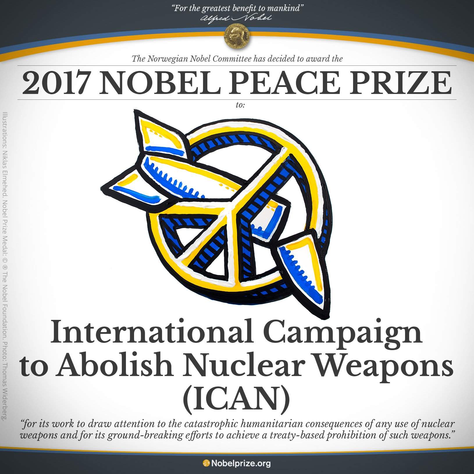 Organizacija je Nobela primila za "osvještavanje katastrofalnih humanitarnih posljedica koje donosi korištenje nuklearnih oružja te za napore da se postigne njegova zabrana".
