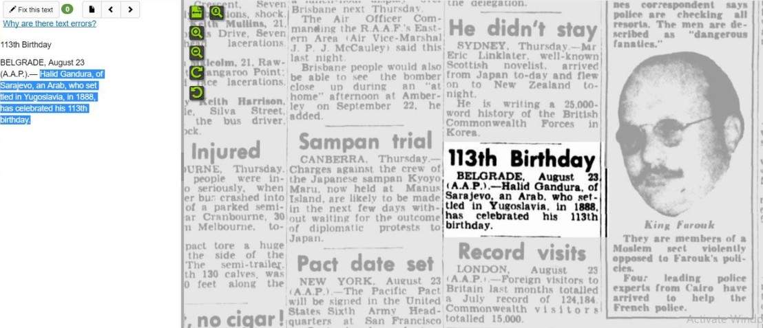 Dvadesetčetvrtog avgusta 1951. godine, australski list „The Curier Mail“ iz Brisbejna na naslovnoj stranici objavio je kratku vijest, pozivajući se na AAP – Australian Association Press, prenosi bh. informativni servis INS.