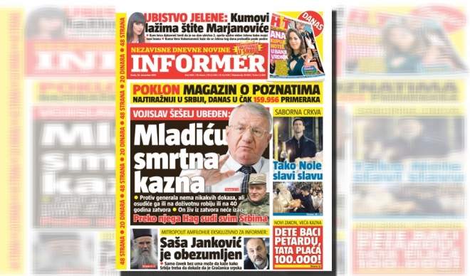 „Protiv generala nema nikakvih dokaza, ali osudiće ga ili na doživotnu robiju ili na 40 godina zatvora. On živ iz zatvora neće izaći. Preko Mladića hoće da osude Srbe za genocid“, kaže lider radikala, prenosi srbijanski tabloid Informer, blizak Aleksandru Vučiću, predsjedniku Srbije.