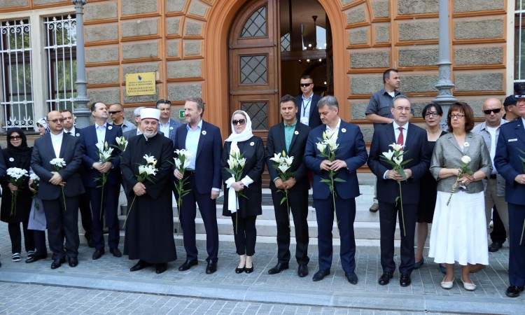 U delegaciji koja je dočekala tužnu povorku ispred zgrade Predsjedništva BiH u Sarajevu bili su, pored ostalih, i predsjedavajući Vijeća ministara BiH Denis Zvizdić, premijer Federacije BiH Fadil Novalić te ambasadorica Sjedinjenih Američkih Država u BiH Maureen Cormack, javlja Fena.
