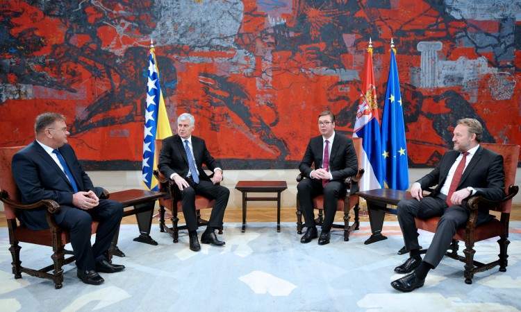 Predsjedavajući i članovi Predsjedništva Bosne i Hercegovine Dragan Čović, Bakir Izetbegović i Mladen Ivanić susreli su se danas u Beogradu s predsjednikom Republike Srbije Aleksandrom Vučićem s kojim su razgovarali o brojnim pitanjima značajnim za dvije zemlje, uključujući i pitanje razgraničenja.
