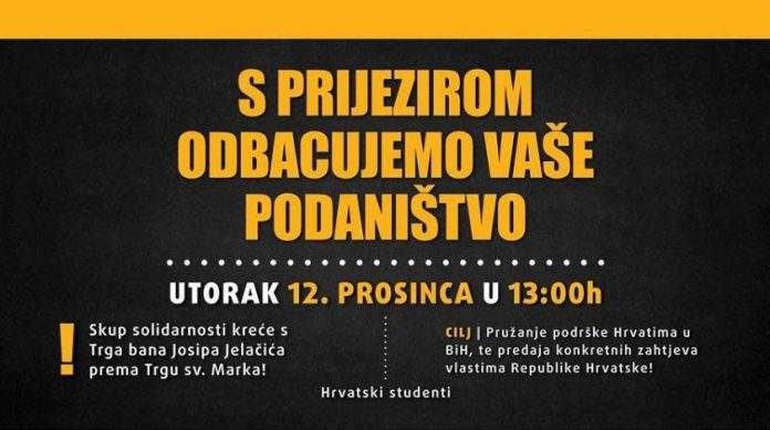 U utorak, 12. decembra 2017. u 13 sati na Trgu bana Josipa Jelačića održat će se, kako je najavljeno, prosvjedni skup hrvatskih studenata.