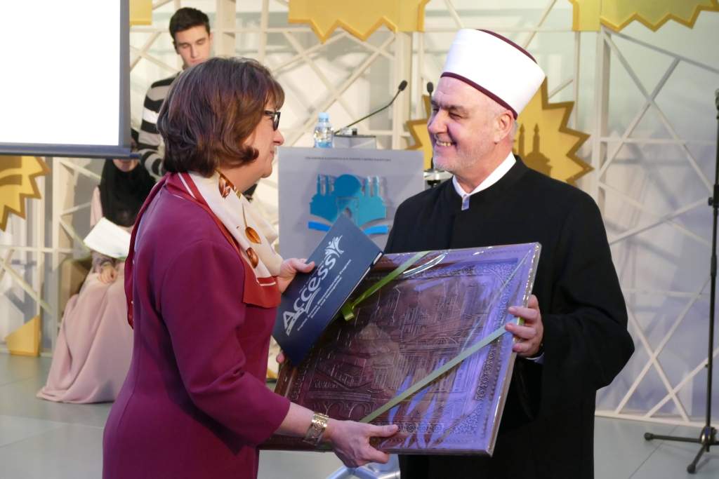 Reisu-l-ulema Kavazović je uručio zahvalnice i simbolične poklone Njenoj Ekselenciji ambasadorici Cormack i njenim saradnicima, te priznanja nastavnicima koji vode Access program u BiH.