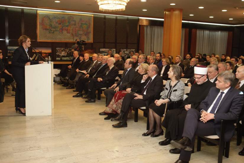 Večeras su se prisutni podsjetili ratne 1992. godine, kada je u opkoljenom Sarajevu u hotelu Holiday Inn, u razorenoj međunarodno priznatoj Republici Bosni i Hercegovini, 22. decembra, održana osnivačka Skupština Vijeća Kongresa bosansko-muslimanskih intelektualaca, kojoj je prisustvovalo više od 800 delegata i zvanica, politički i vojni vrh Republike BiH, intelektualci, javni, društveni, kulturni i privredni djelatnici iz čitave BiH.