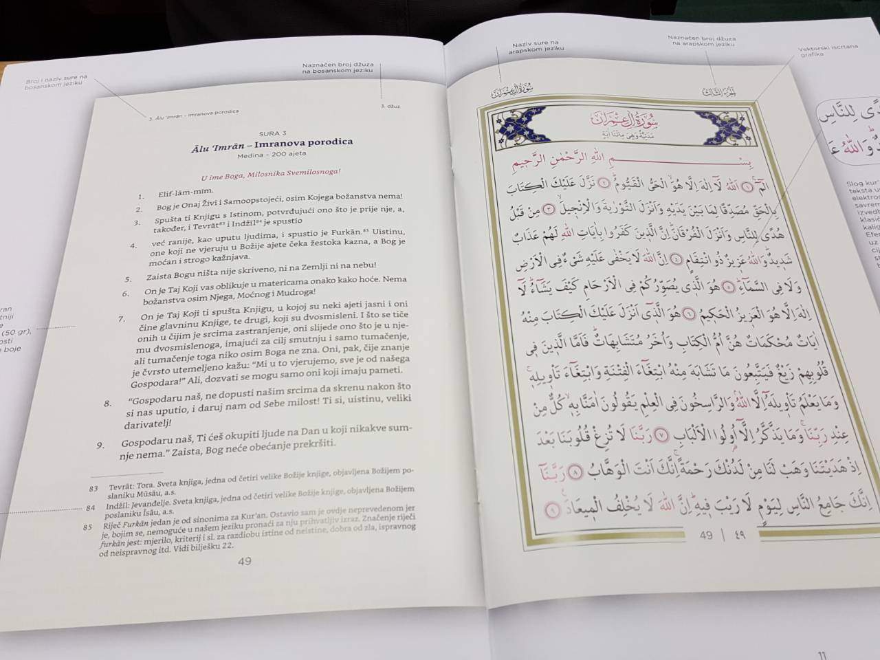 Ispred izdavača Bećirović je poručio i kako je ovo izdanje u likovnom, grafičkom i tehničkom smislu, dostojno sadržaja koje nosi u sebi jer pored odlične verzije arapskog teksta nudi i vrhunski dizajn listova i korica te najkvalitetniji papir.