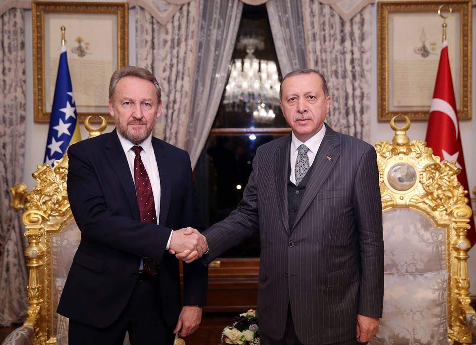 Erdogan je Izetbegovića večeras primio u palati Mabeyn u Istanbulu, uoči sutrašnjeg trilateralnog sastanka Turska-BiH-Srbija na najvišem nivou.