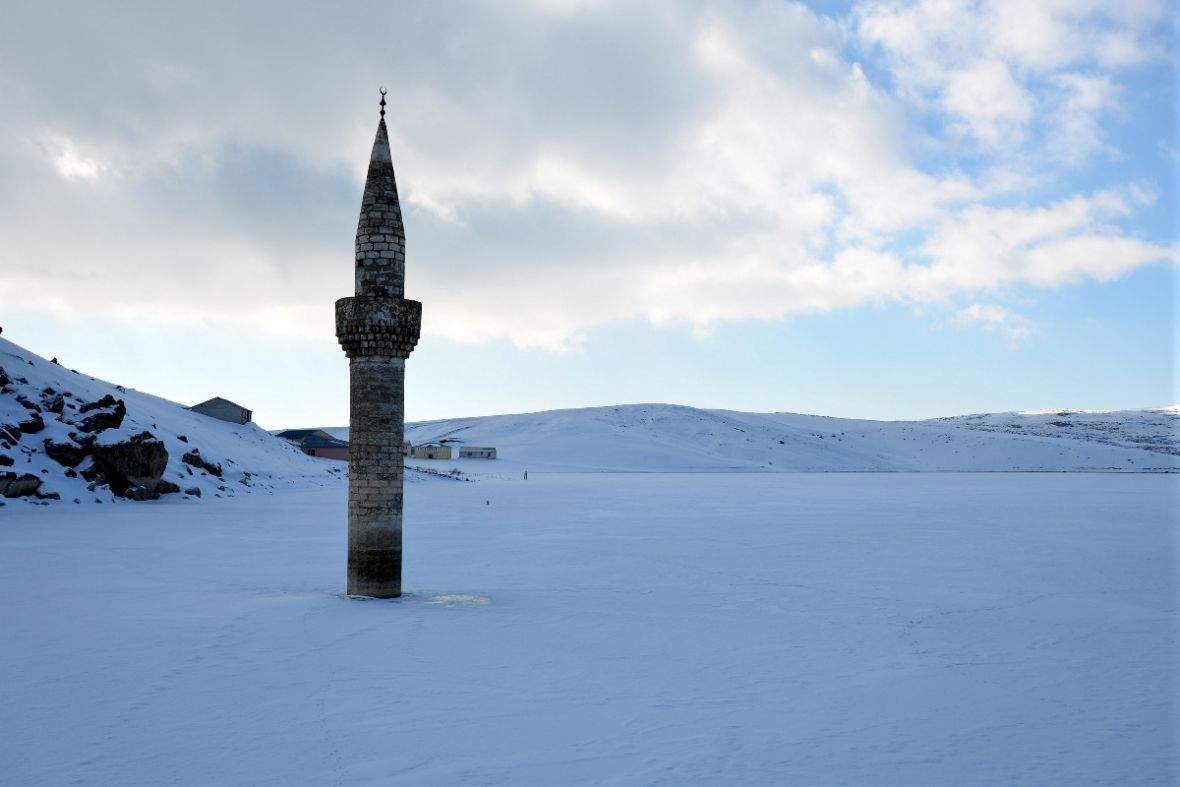 Riječ je o munari džamije koja je ostala pod vodom nakon što je 2009. godine napunjena brana Yazici. Brana služi potrebama istoimene hidroelektrane, ali i za navodnjavanje više od 25.000 hektara poljoprivrednog zemljišta u Agriju, javlja Anadolija.