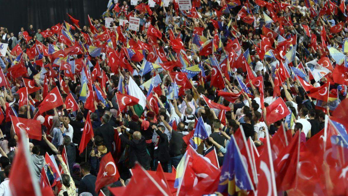 "A kada vam Bog takvog čovjeka pošalje, imate obavezu da mu ponognete, da bude na pravoj strani da prevagne prava strana. Malo nedostaje da prava strana prevagne. To su vaši glasovi, turaka iz Evrope. Budite uz svog lider, uz Tursku uzpobjedu. Živi bili", poručili su obojica.