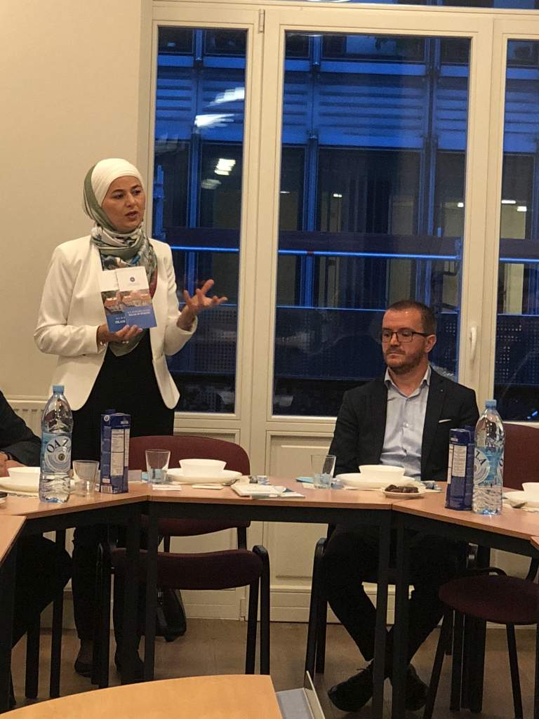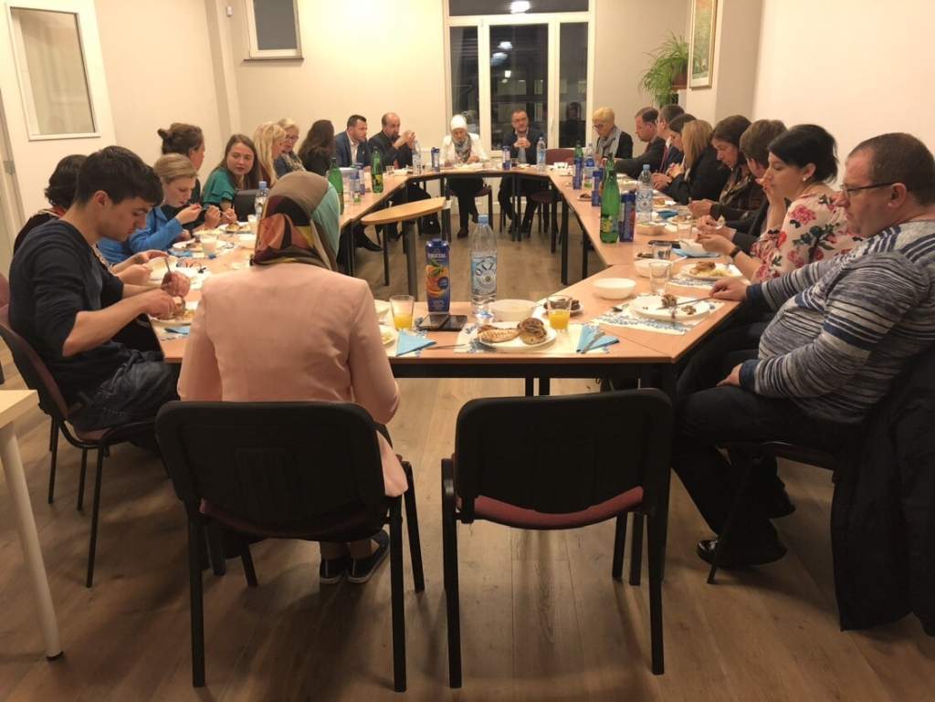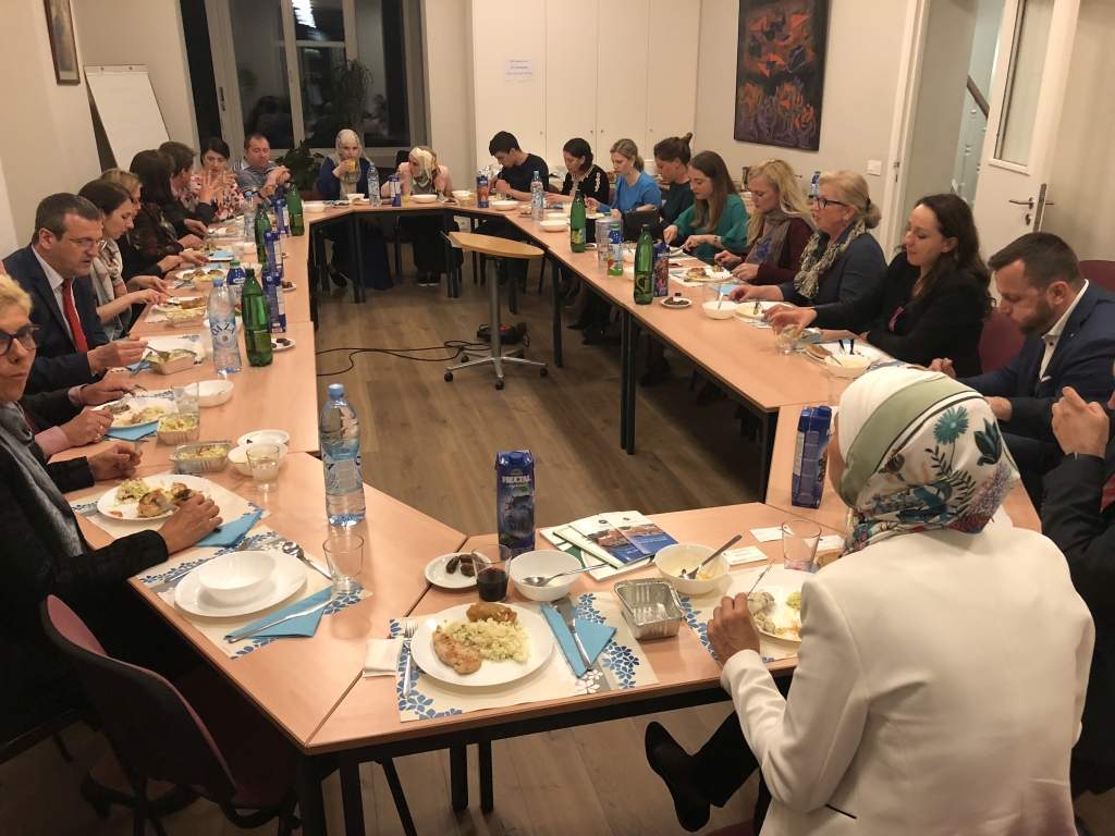 Domaćini iftara su bili Senaid Kobilica, šef Predstavništva IZ-e pri Europskoj uniji, dr.DževadaŠuško, šefica Odjela za Zapadni svijet pri Upravi i Muhamed Jusić, savjetnik Reisu-l-uleme za medije. Domaćini su se obratili prisutnima zahvalivši im na dolasku i dosadašnjoj saradnji. Iftar je bila prilika za razgovor o zajedničkim projektima.(kraj)