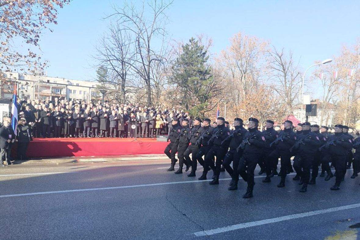 Tu je i sin ratnog zločinca Ratka Mladića, Darko Mladić, kao i pripadnici Trećeg puka Oružanih snaga BiH, te bivši pripadnici takozvane VRS. Kadeti policije su odjeveni u kako su tu iz ovog entiteta objasnili "tradicionalne uniforme", a u ruci nose pukovske zastave takozvane VRS. Zastavni vod, 10 ešalona jedinica i pet motorizovanih ešalona MUP-a RS.
