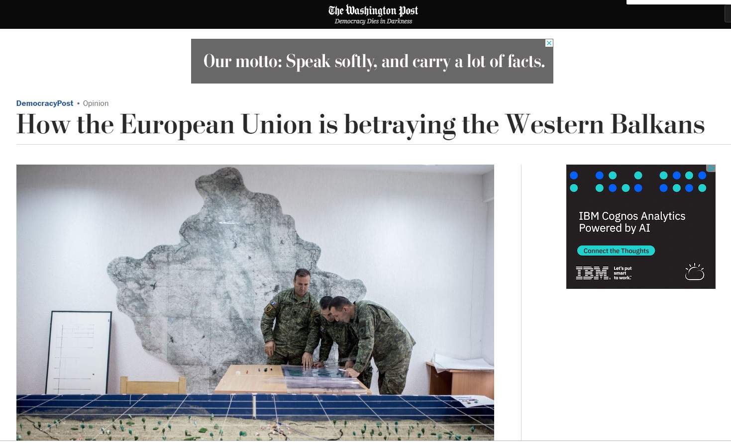 Evropska unija je na rubu velike krize koja je jednako ukorijenjena u nesposobnost briselskog establišmenta kao u cinizmu i provincijalizmu država članica. To je priča o i izdaji, iznevjerenim obećanjima i kukavičluku, priča o “trijumfu nedostatka volje”. U proteklih 16 godina Brisel obećava državama zapadnog Balkana, najranjivijem i najnestabilnijem dijelu kontinentu, da je “budućnost Balkana u Europskoj uniji”.
