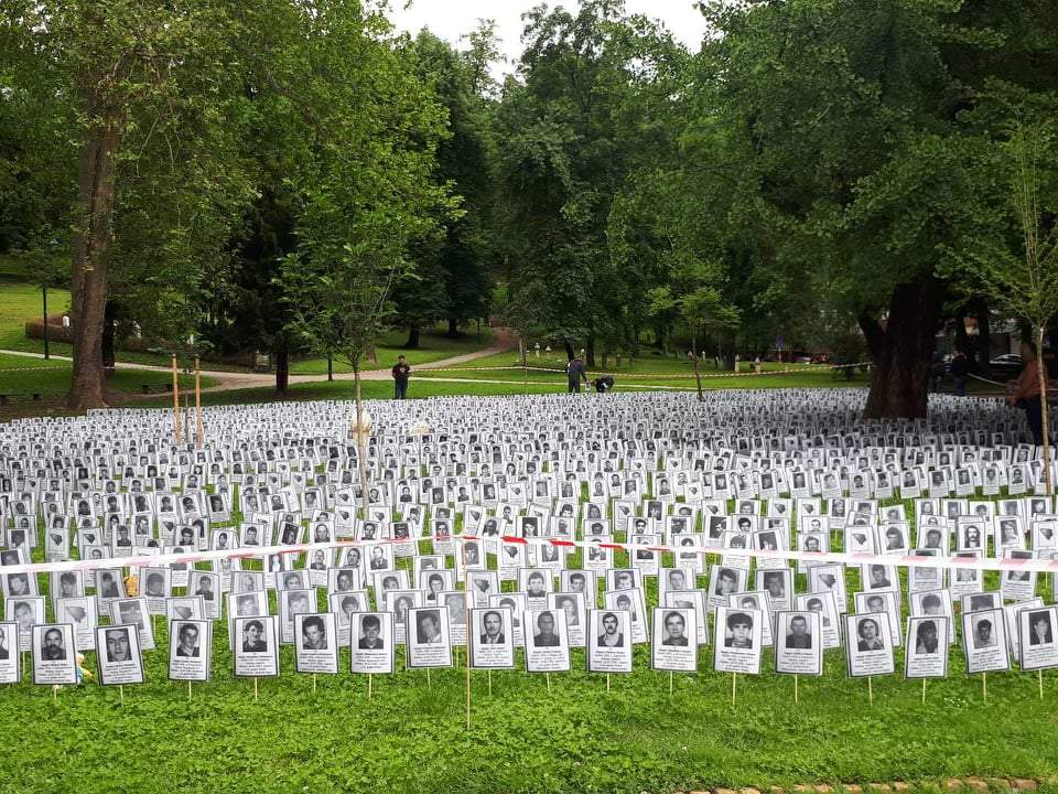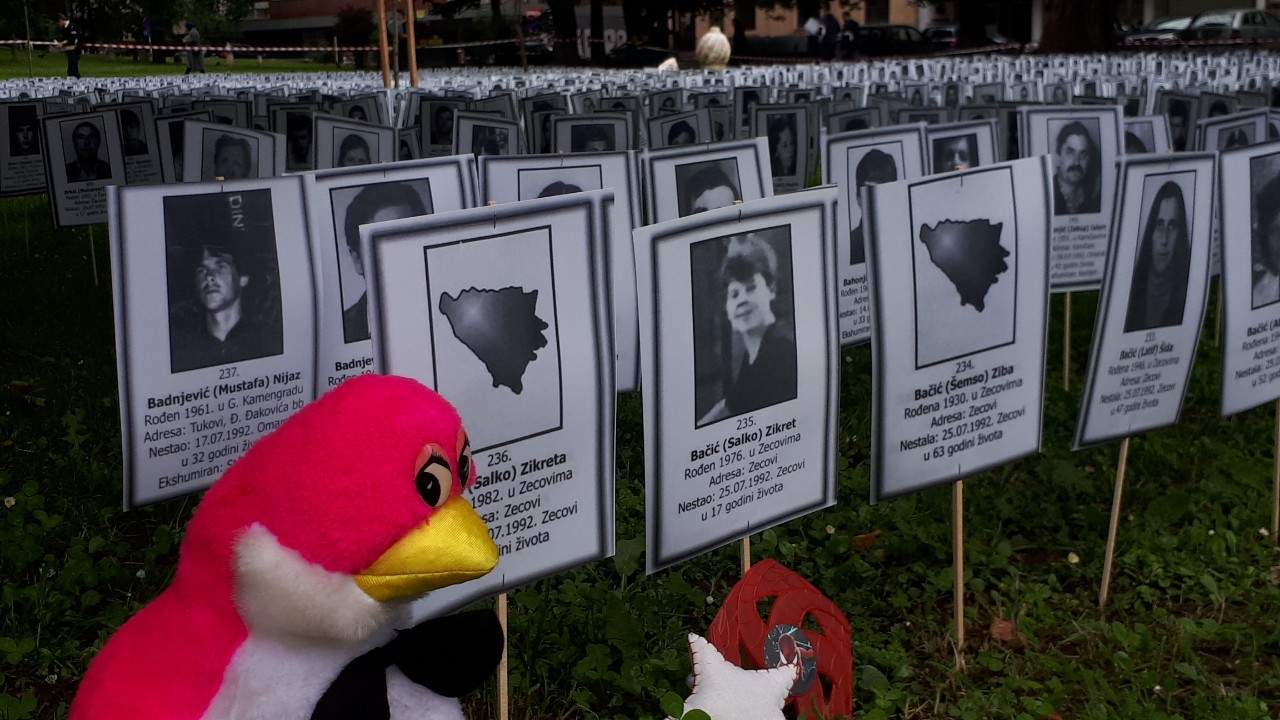 U organizaciji nevladine organizacije AntiDayton u Velikom parku u Sarajevu postavljene su fotografije 3.176 Prijedorčana ubijeni tokom etničkog čišćenja devedesetih, među kojima je i 102 djece.