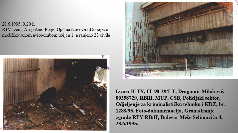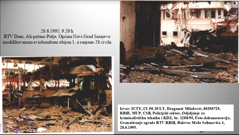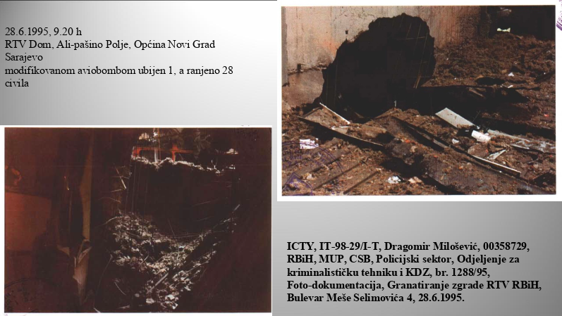 Naši artiljerci precizno odgovaraju na dejstva muslimanske atriljerije. U jednom takvom odgovoru 28. juna pogodili su RTC BiH, centar medijske laži protiv pravedne borbe srpskog naroda. (Dragomir Milošević, 30. juni 1995)