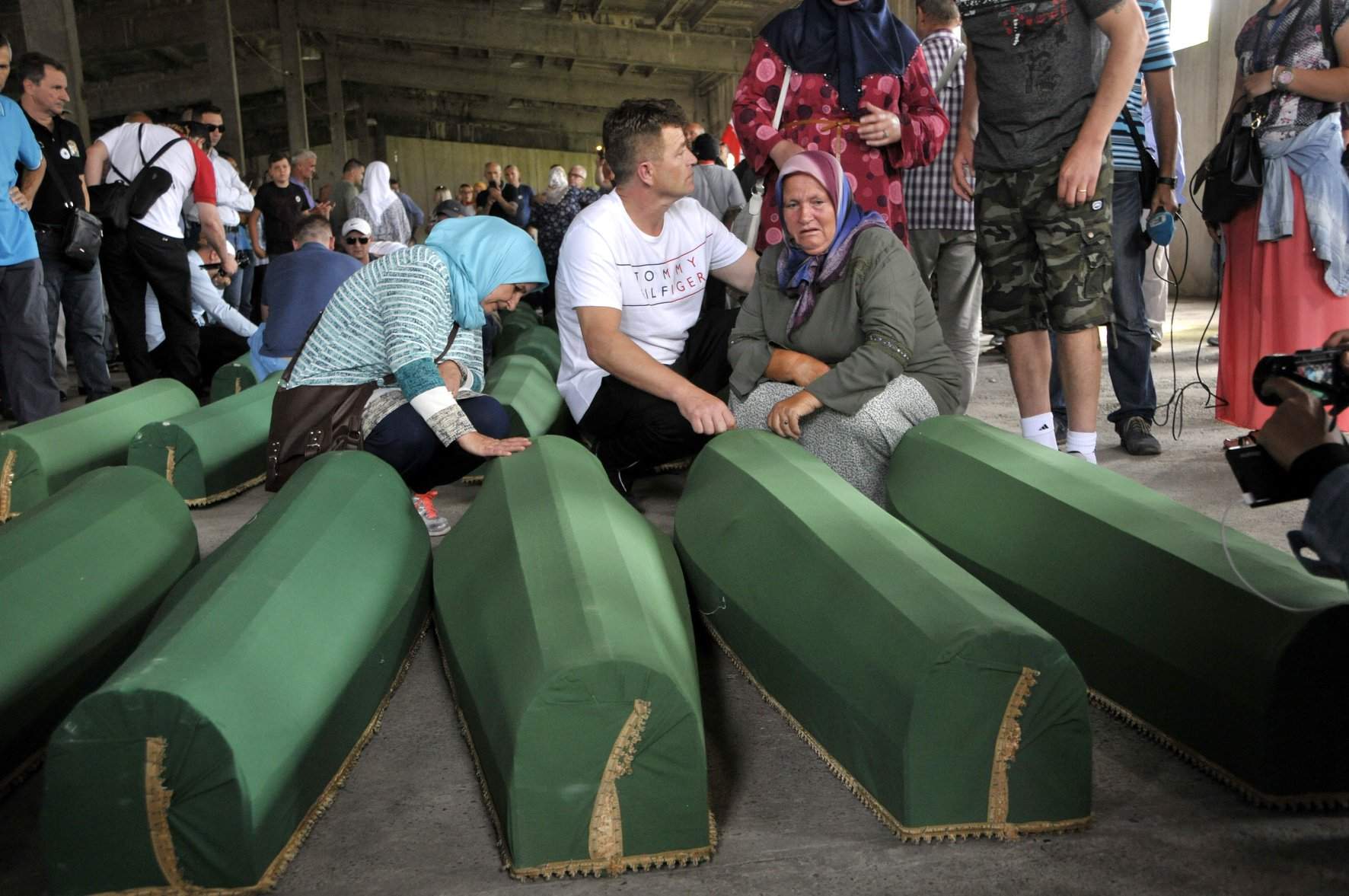 U hali bivše Fabrike akumulatora u kompleksu Memorijalnog centra Srebrenica - Potočari poredana su 33 zelena tabuta u kojima se nalaze nekompletni posmrtni ostaci Srebreničana, ubijenih u ljeto '95. godine. Tišina i jecaji majki, sestara, braće, a na tabutima brojevi i imena.