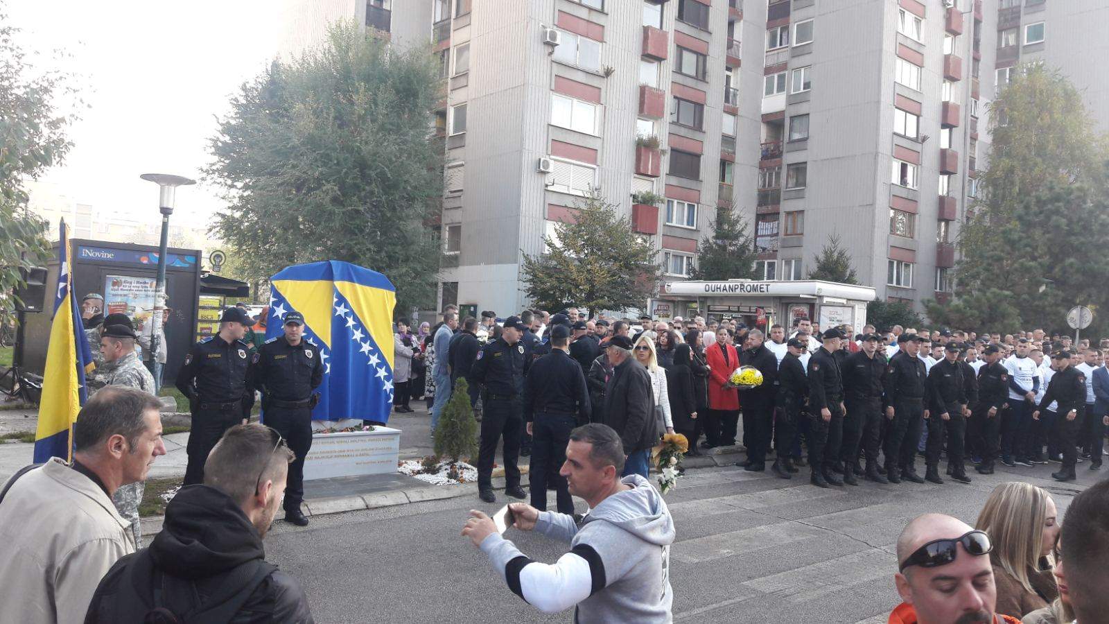 Nakon otkrivanja spomenika brojne delegacije položile su cvijeće, a komesar Nusret Selimović uručio je zastavu BiH porodicama ubijenih policajaca.