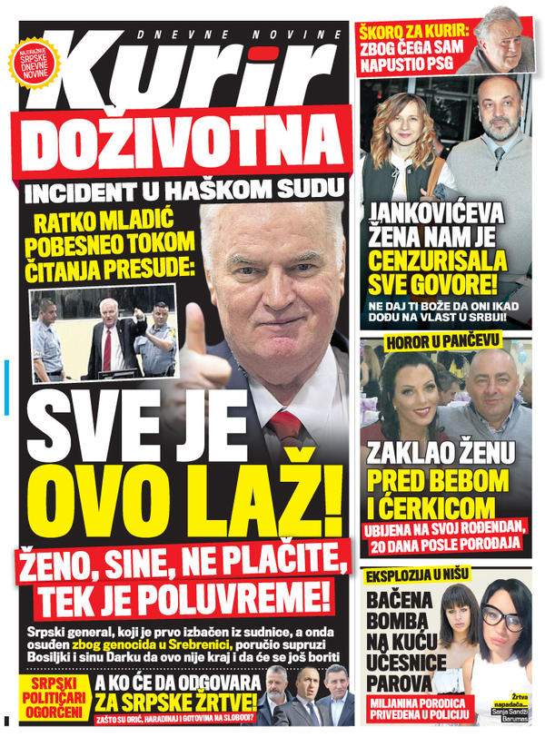 To se može zaključiti i danas kada se pogleda način na koji su srbijanski tabloidi, pa i tabloidne televizije bliske režimu, izvještavali o presudu ratnom zločincu Ratku Mladiću.
