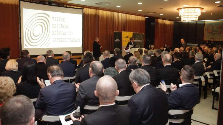 Večeras su se prisutni podsjetili ratne 1992. godine, kada je u opkoljenom Sarajevu u hotelu Holiday Inn, u razorenoj međunarodno priznatoj Republici Bosni i Hercegovini, 22. decembra, održana osnivačka Skupština Vijeća Kongresa bosansko-muslimanskih intelektualaca, kojoj je prisustvovalo više od 800 delegata i zvanica, politički i vojni vrh Republike BiH, intelektualci, javni, društveni, kulturni i privredni djelatnici iz čitave BiH.