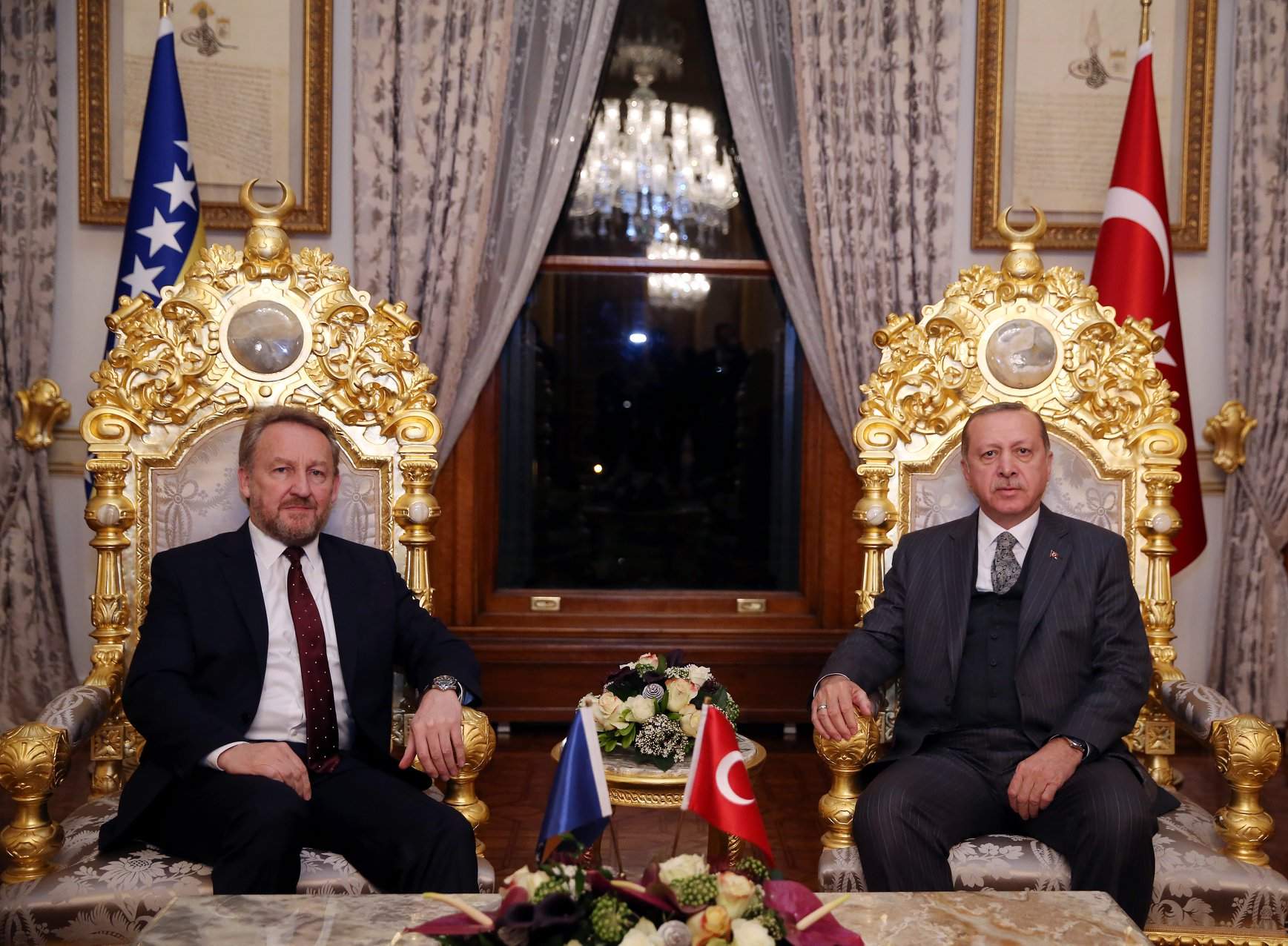 Erdogan je Izetbegovića večeras primio u palati Mabeyn u Istanbulu, uoči sutrašnjeg trilateralnog sastanka Turska-BiH-Srbija na najvišem nivou.