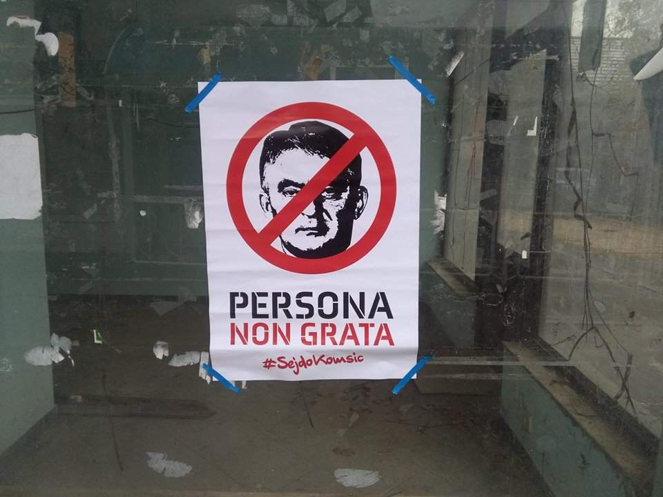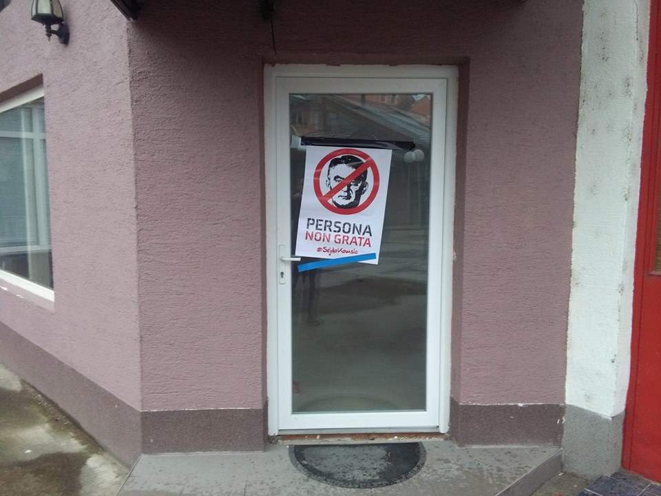 Uoči same svečane sjednice u Odžaku je sinoć ili rano jutros grad oblijepljen plakatima na kojima je prekrižen Željko Komšić s porukom 'presona non grata'. Ove plakate su zalijepljene i na kancelarije DF-a u Odžaku, javlja Patria.